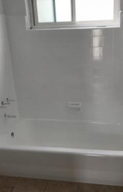 Bathtub resurfacing is available for your bathtub, bathroom walls, vanities, showers, kitchen countertops, or any other tile surface. If the tile surface is damaged, or if there is missing or loose grout, or excessive mildew, we can repair it before the refinishing process. Tile can be resurfaced in many solid colors, but the (Stone Flecks) granite look is our most popular. Just imagine all of that old tile looking new again, with no grout lines to clean! Tile refinishing saves home owners money because it is done on location, in about four hours. This is one of the easiest ways to change your drab walls to look like new. Tile resurfacing has so many benefits when you compare it with costly bathroom remodeling. You will never again have worry about scrubbing ugly black mildew from grout lines because they are all completely sealed with a seamless coating which will prevent mildew. This is how the bathtub reglazing is done. First, a thorough preparation of the surface is accomplished, checking to make sure all tiles are secure and the grout lines are solid. The surface is carefully cleaned to remove any deposits from the tile. Next, a molecular bonding agent is applied to the surface. Now several layers of the acrylic top coat is sprayed on. All of this takes about four hours and builds up a beautiful new finish. Wait twenty-four hours and it is ready to use. This surface will have a high gloss and be more durable than the original surface. It is easy to keep looking clean and fresh.