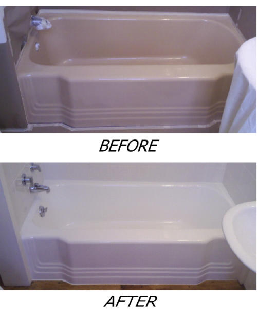 "When another company told me that my damaged tub could not be repaired, I called Bathtub Refinishing. Not only did they fix the tub, but they also refinished it. Now it is perfect. The workman was very nice and the job was excellent. Thanks!  M. Weskamp "Our tub was refinished to like-new appearance in just a few hours. I heartily recommend Bathtub Refinishing as an alternative to (expensive) fixture replacement."  D. Chasse